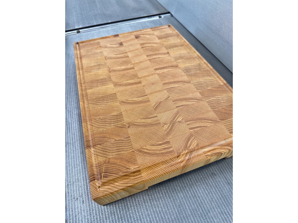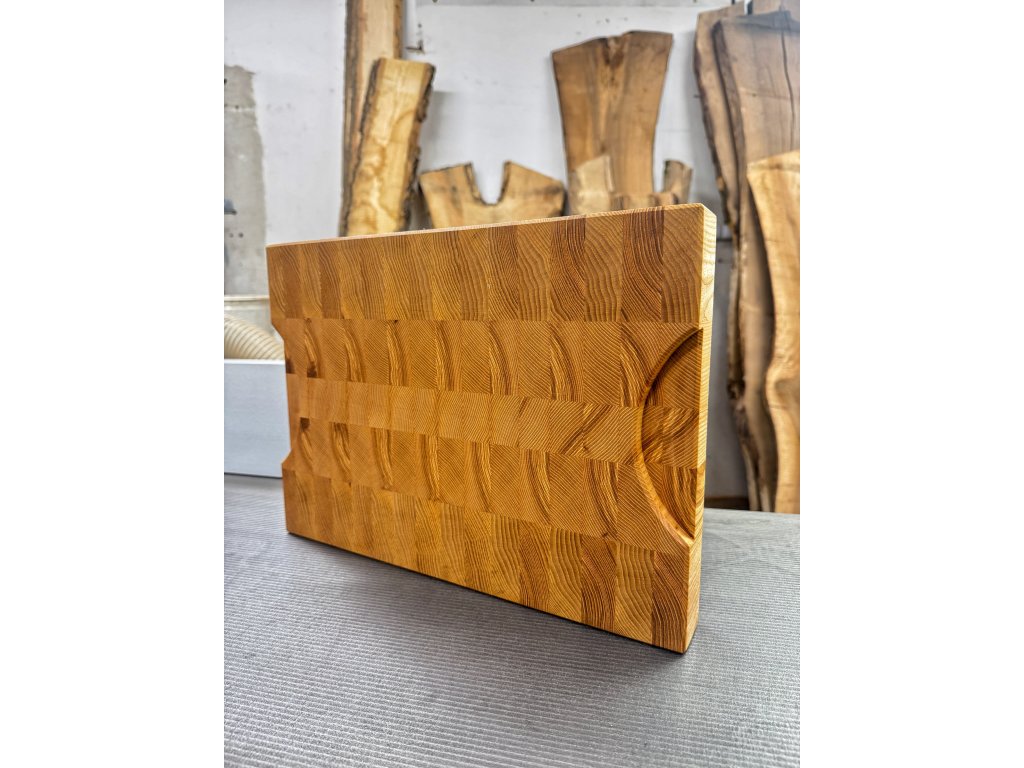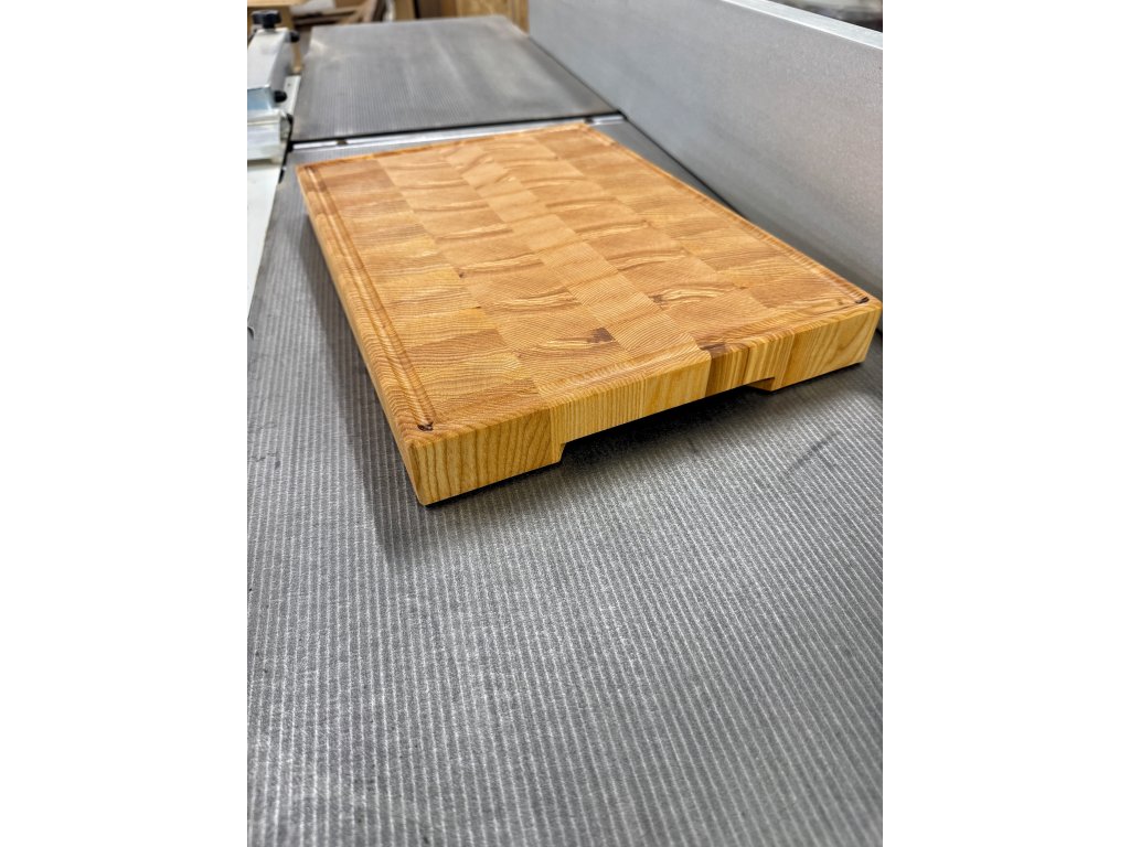 Profesionálna End Grain doska na krájanie vyrobená z jaseňového masívu pre maximálnu odolnosť a šetrnosť k nožom.
