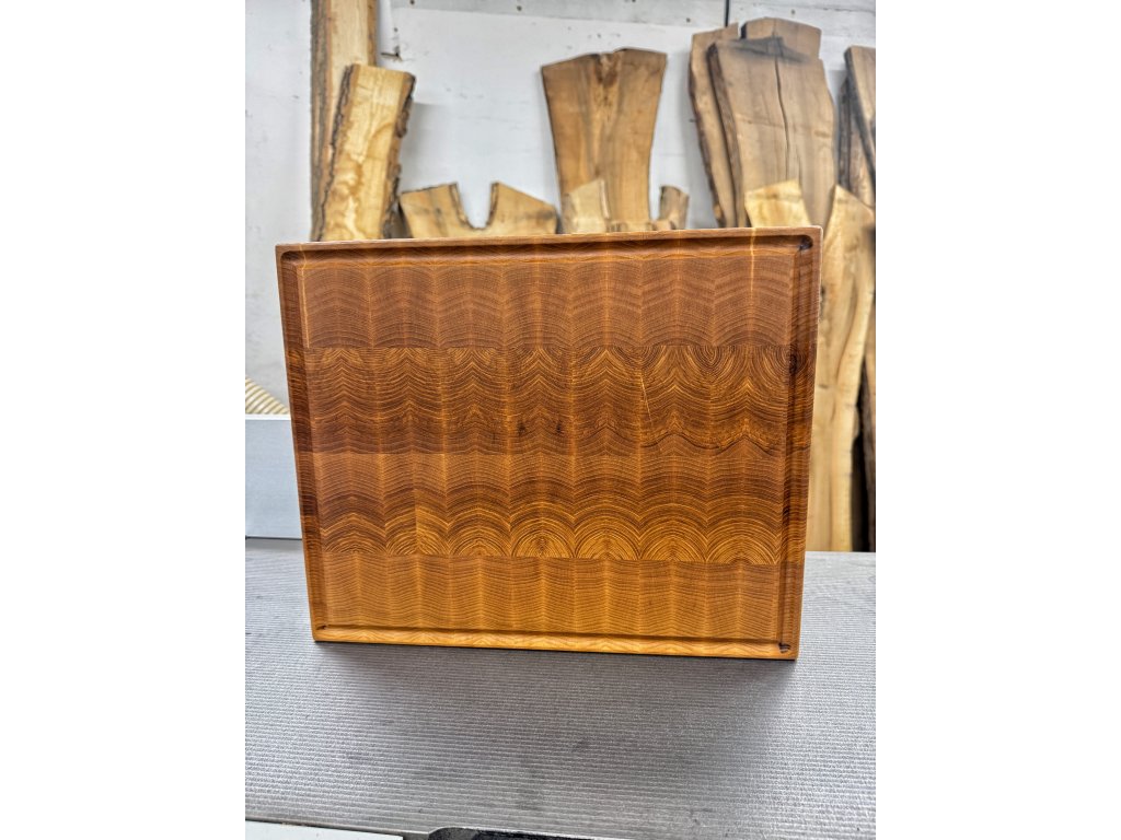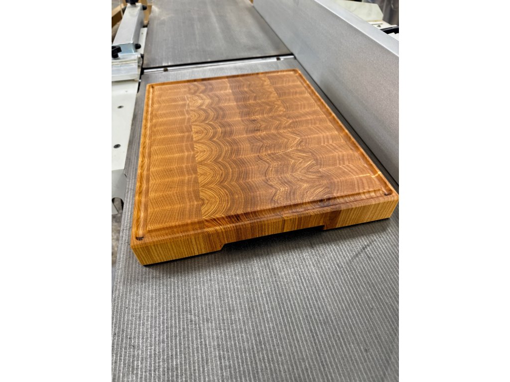 Okrem svojej funkčnosti pôsobí doska aj ako estetický doplnok kuchyne, ktorý v sebe spája prirodzenú krásu dreva a remeselnú kvalitu. Je navrhnutá tak, aby vám spoľahlivo slúžila dlhé roky. Kanálik po obvode zabezpečuje zachytenie tekutín a zafrézovanie na zadnej strane zaručuje jednoduchú manipuláciu.