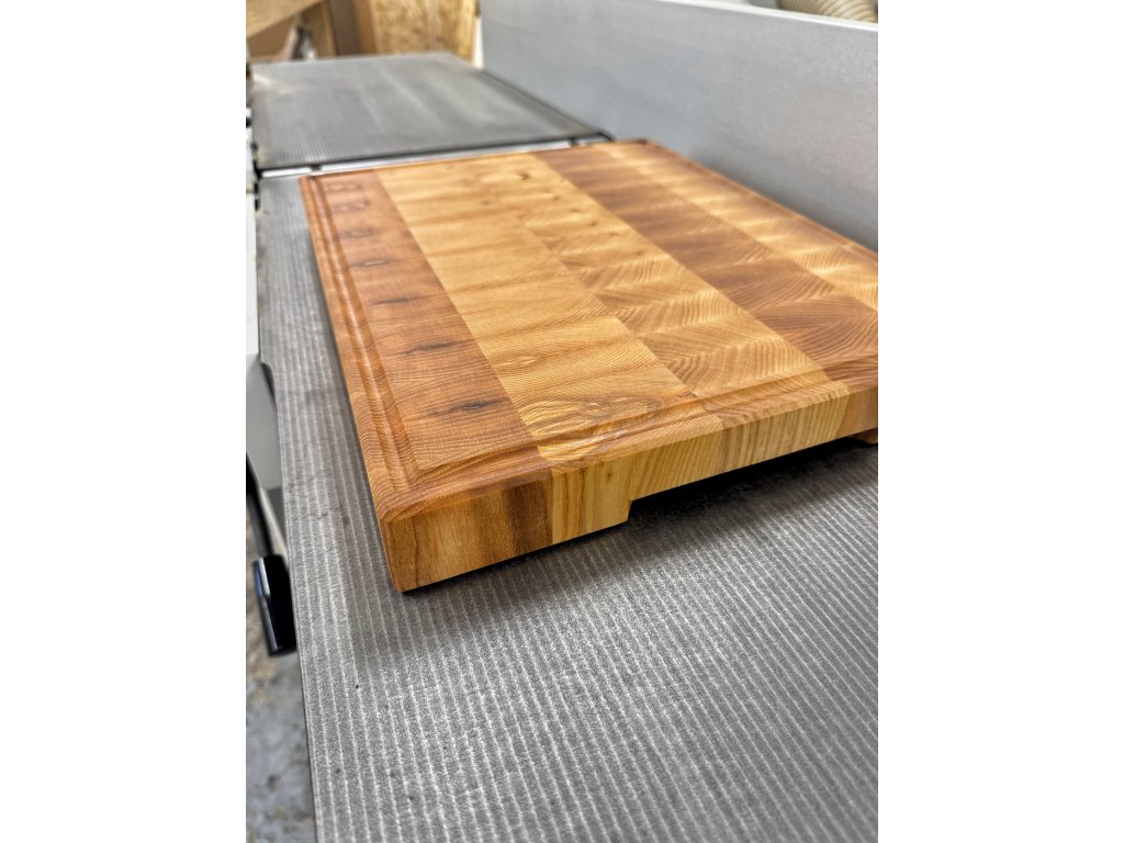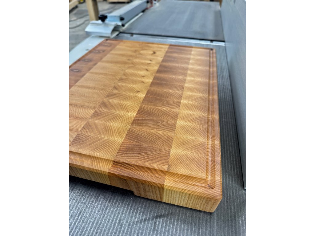Profesionálna End Grain doska na krájanie vyrobená z jaseňového masívu pre maximálnu odolnosť a šetrnosť k nožom.