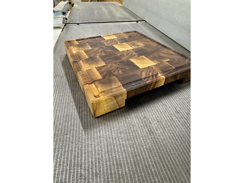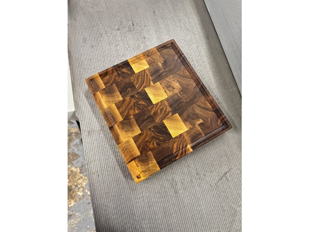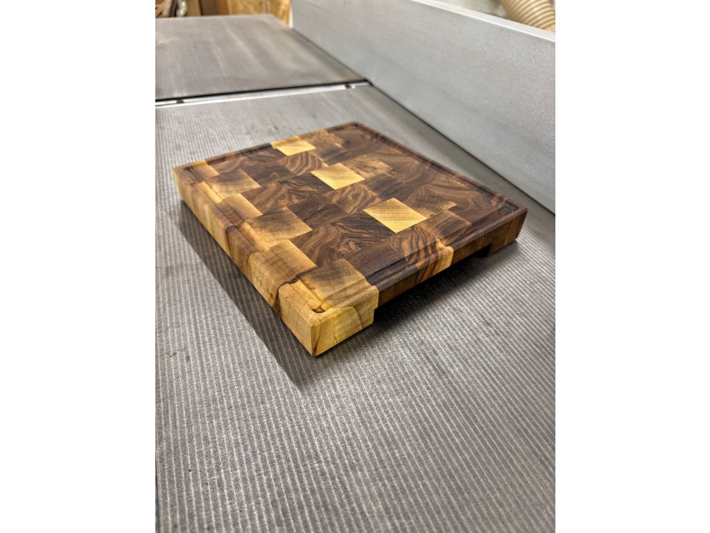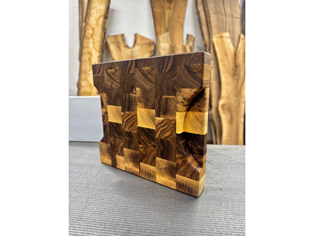 Profesionálna End Grain doska na krájanie vyrobená z orechového masívu pre maximálnu odolnosť a šetrnosť k nožom.