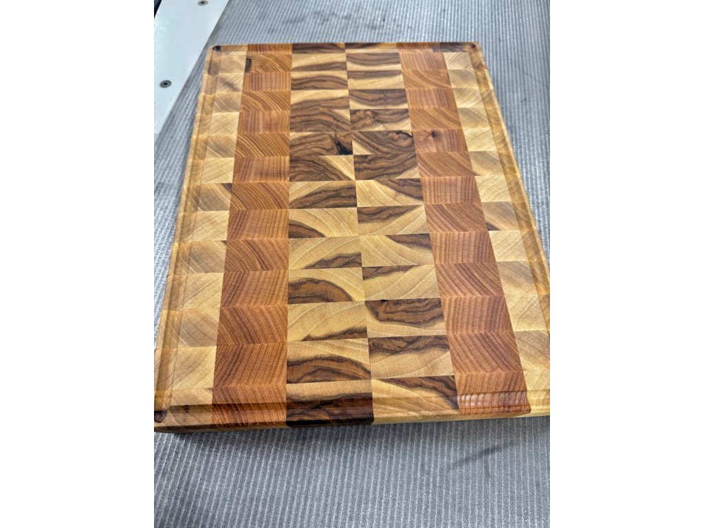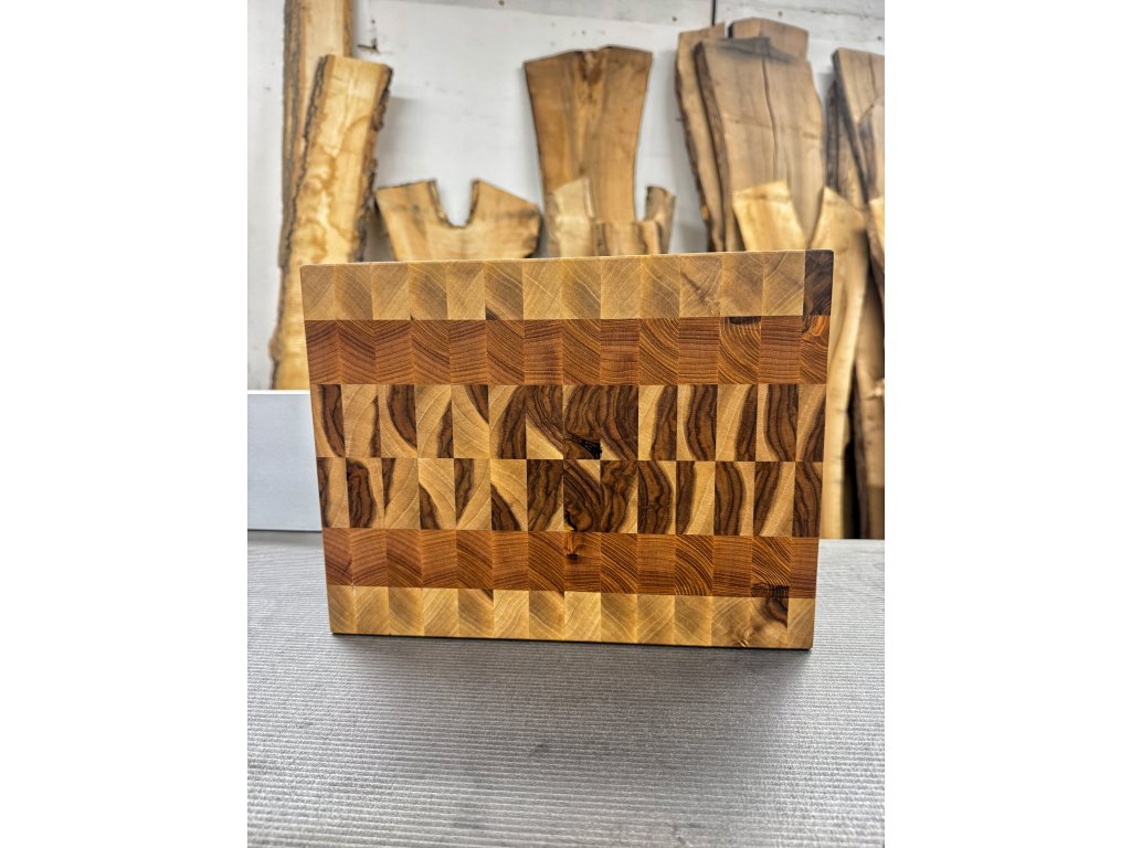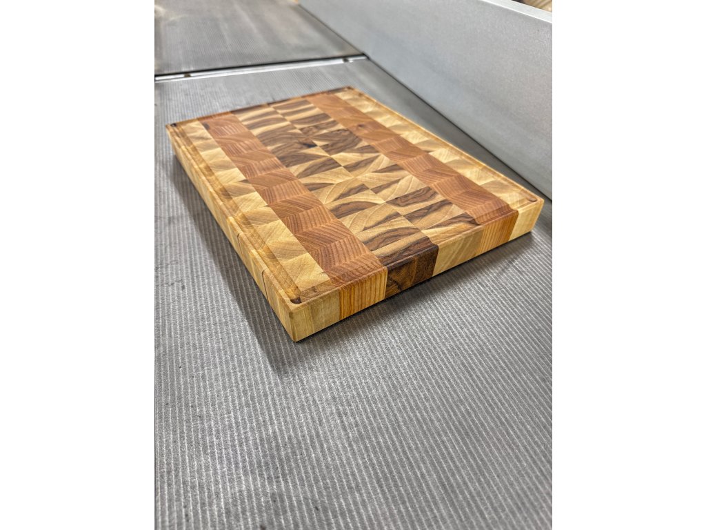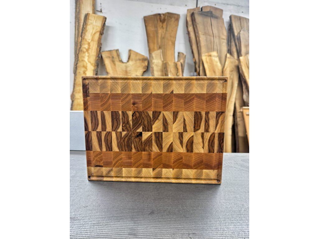 Profesionálna End Grain doska na krájanie vyrobená z orechového a jaseňového masívu pre maximálnu odolnosť a šetrnosť k nožom.