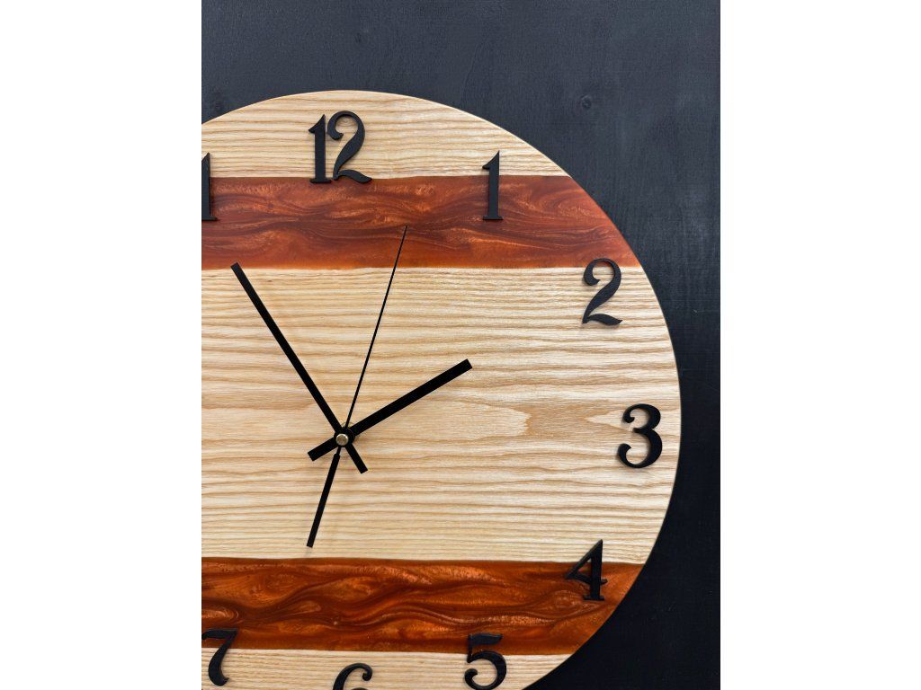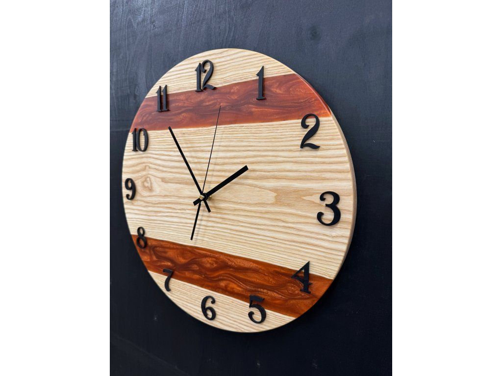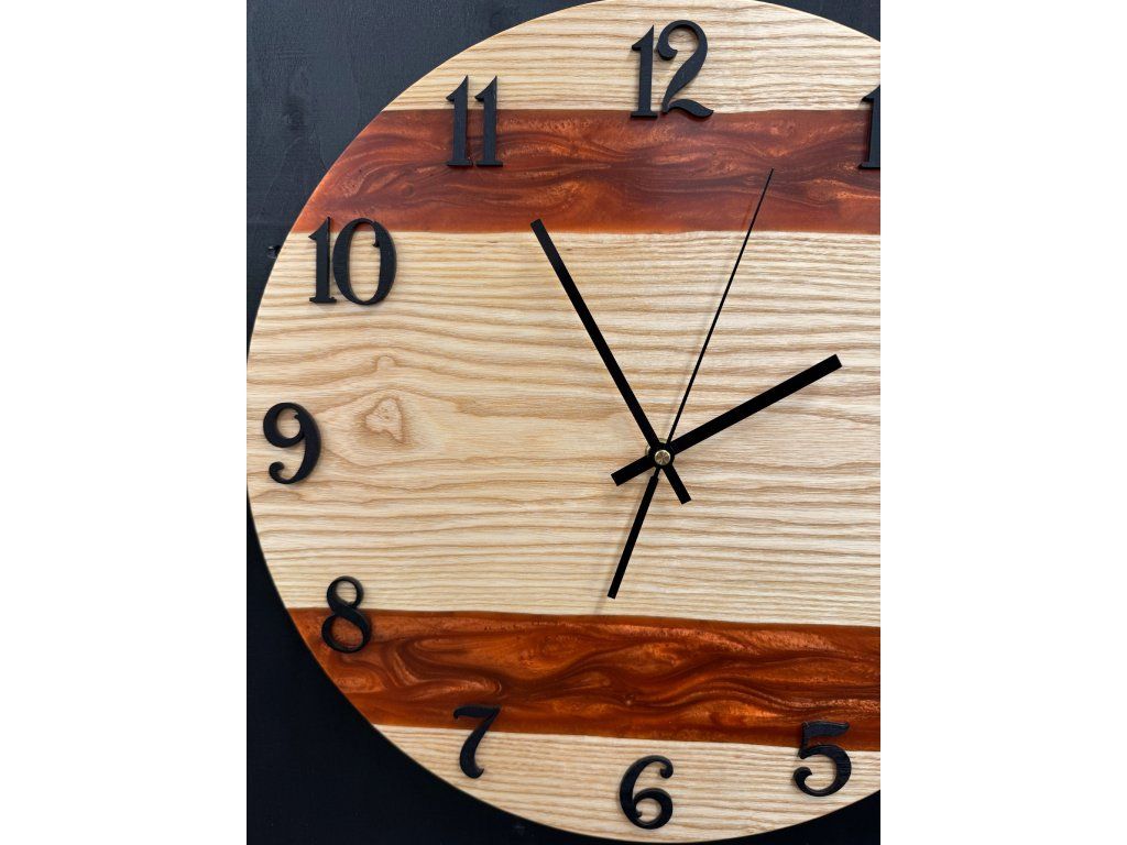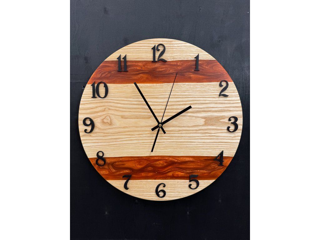 Nástenné hodiny z jaseňového dreva a epoxidovej živice vyrobené poctivou remeselnou prácou