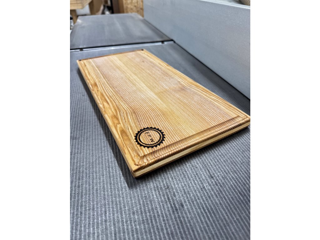 Doska z jaseňového dreva s drážkou na zachytávanie štiav. Ideálna na krájanie aj štýlové servírovanie.