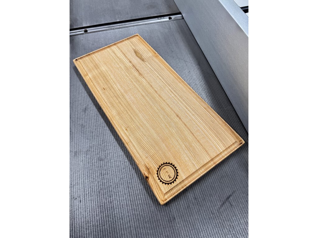 Doska z jaseňového dreva s drážkou na zachytávanie štiav. Ideálna na krájanie aj štýlové servírovanie.