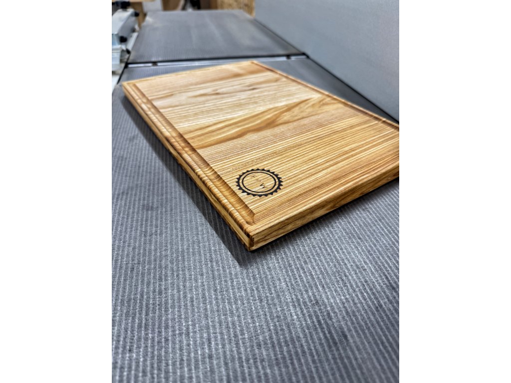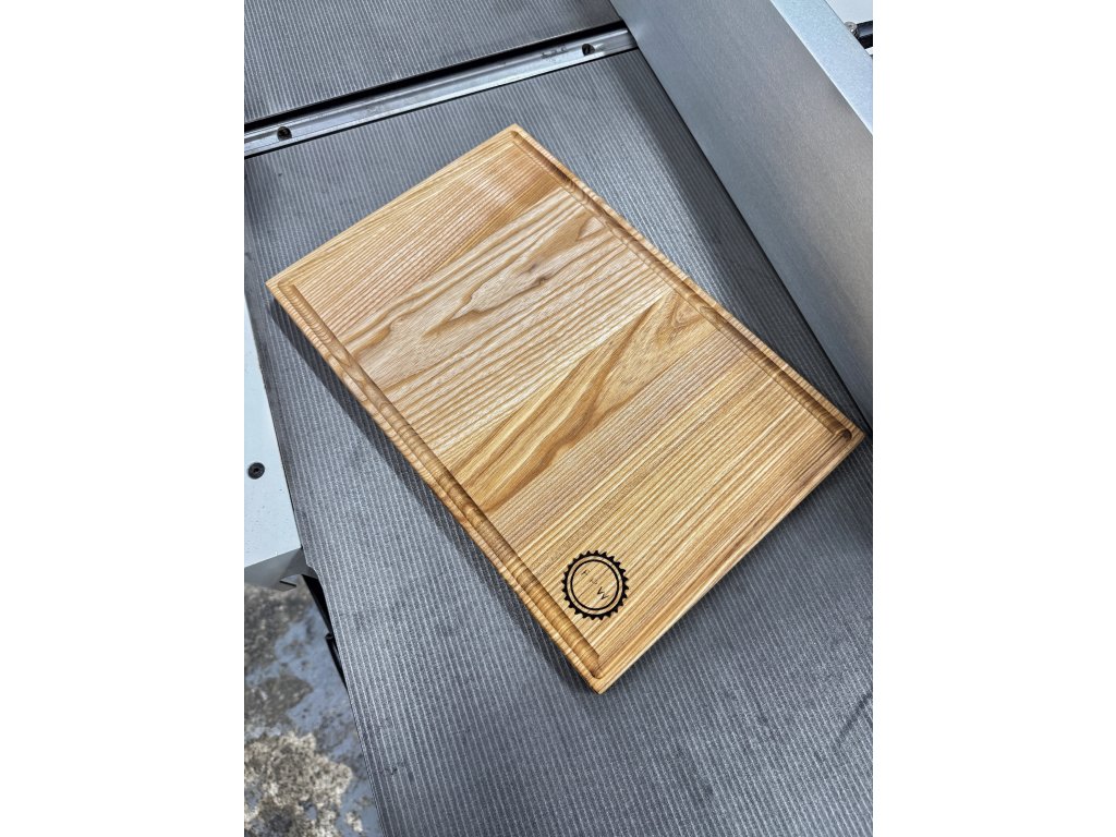 Doska z jaseňového dreva s drážkou na zachytávanie štiav. Ideálna na krájanie aj štýlové servírovanie.